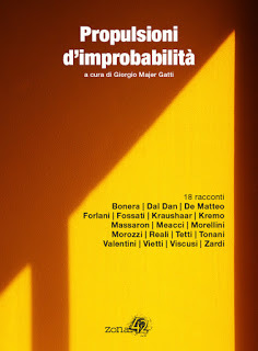 Questo è un post che avrei voluto scrivere parecchi mesi fa, poco dopo la lettura di Propulsioni d'improbabilità, l'antologia di racconti curata da Giorgio Majer Gatti e pubblicata da Zona 42, che riunisce diciotto testi di autori italiani che più o meno rappresentano quello che si muove oggi nella fantascienza italiana. Non l'ho fatto all'epoca perché, visto che il volume contiene anche un mio racconto, mi pareva che sarebbe potuto apparire come un ampio eufemismo pubblicitario. Ma a distanza di mesi la polvere si è posata, e penso se ne possa parlare senza essere tacciati di bieca autocelebrazione.In realtà, non avrei rimesso mano a questo post nemmeno adesso, se non fosse venuto fuori un tema simile in un paio di discussioni ravvicinate che si sono succedute su alcuni gruppi e profili facebook, nei giorni scorsi. E che in un certo senso si riagganciano anche a quanto dicevo qualche settimana fa sulla percezione del "mondo nerd" da parte del resto del pubblico. La combinazine di queste circostanze mi ha portato a pensare che sarebbe stato interessante condividere questa riflessione sugli attuali trend della fantascienza italiana.