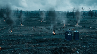 Non tutto però funziona come dovrebbe. Forse quello che sulla carta appariva intenso e profondo non è venuto fuori come previsto. La mancanza di scene di azione (a parte qualche breve fuga) fa incespicare lo svolgersi della trama, di cui non si capisce quando si arriva al climax. Il Primo Dottore è interpretato con cura magistrale da David Bradley, che riesce a renderne in modo quasi perfetto la parlata e l'atteggiamento, ma il personaggio è scritto al limite del macchiettistico, e la gag del suo sessismo da anni 60 si trascina un po' troppo. La comparsa di Bill (vera o simulata che sia) appare un po' forzata e in ultima analisi non così necessaria... sembra che l'abbiano voluta inserire perché ormai l'avevano pagata per tutta la stagione, e allora tanto vale mettercela, quando la sua chiusura in The Doctor Falls era più che sufficiente. Tra tutti, è sicuramente il personaggio di Mark Gatiss (sempre più apprezzabile come interprete che come autore, vedi Sleep No More ): un soldato nobile, altruista, pronto al sacrificio ma anche alla compassione, uno spiraglio di umanità davvero rincuorante. Anche se il modo in cui compare nella storia è piuttosto artificioso, concede l'occasione per una commovente cronaca della tregua di Natale durante la prima guerra mondiale. Infine, il percorso che porta il Dodicesimo Dottore ad accettare la rigenerazione non è così esplicito. Sembra anzi che gli eventi vissuti abbiano convinto più il Primo, mentre non si riconosce il momento in cui anche il Dodicesimo capisce che è giusto cambiare e andare avanti. Quando saluta per l'ultima volta i suoi companion (Bill, Nardole e Clara, di cui ha riacquisito i ricordi dopo averli persi alla fine della nona stagione) vediamo ancora un uomo sofferente e stanco.