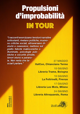 Il volume uscirà in cartaceo e digitale a fine mese, ma è già disponibile in preordine sul sito di Zona 42. La prima presentazione sarà fatta nell'ambito dell'Italcon, il 27 maggio a Chianciano Terme, ma ne seguiranno altre a cui con tutta improbabilità sarò presente anch'io.