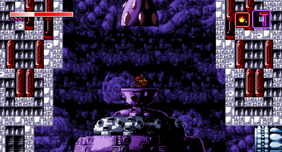 Axiom Verge , per dire, è stato interamente realizzato da Tom Happ . E con "interamente" intendo proprio in modo completo: codice, grafica, musiche, testing. Tutti gli aspetti sono stati messi a punto da lui nell'arco di circa cinque anni, culminando con l'uscita del gioco nel marzo 2015 su PS4 e PC. Axiom Verge è essenzialmente un "metroidvania": un gioco di azione in 2D a scorrimento orizzontale, in cui il protagonista deve esplorare diverse aree, acquisire nuovi oggetti e strumenti per proseguire, e confrontarsi con una serie di avversari di forza via via crescente, con una serie di boss da sconfiggere per procedere. Della serie di Metroid (almeno quello classico) riprende diversi elementi in modo talmente palese da non poter nemmeno essere considerato un semplice omaggio: la suddivisione in zone del mondo, ognuna con un suo tema diverso, le "porte" di transizione da una stanza all'altra, e il percorso di gioco che si basa su aree inizialmente inaccessibili ma che poi si possono raggiungere una volta ottenuti i giusti upgrade. Questo basterebbe a convincere i nostalgici di Super Metroid e simili a provarlo, ma potrebbe anche portare qualcuno a pensare che si tratti tutto sommato di qualcosa di già visto e quindi poco coinvolgente. Ma Axiom Verge fa più che riproporre uno schema consolidato e di sicuro successo, riesce a innovarlo con alcune semplici ma determinanti mosse.