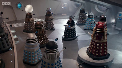 Questo episodio è sicuramente molto intenso per essere una season premiere, anzi forse lo è fin troppo. I riferimenti al passato del Dottore (incluso il Classic Who, non solo il New Who) sono numerosi, e forse non tutti gli spettatori contemporanei possono coglierli, e l'abbondanza di "grandi personaggi" coinvolti è disorientante: insomma, Dalek, Davros e Master insieme non so se si sono mai visti, e sembrerebbe materiale per un finale di stagione piuttoso che un'apertura. Ma questo non è necessariamente un problema, forse è più sospetto il fatto che ancora una volta la storia del Dottore si sia avvolta su se stessa, facendoci intuire che Davros è stato forgiato da quel breve incontro con il Dottore, e che quindi lui stesso può ritenersi responsabile della nascita dei Dalek. Il voler sempre pescare nella mitologia dello show, e rendere il Dottore il centro di tutto, alla lunga può risultare deleterio. Sicuramente è epico, non lo nego, però è un modo di forzare l'epicità, piuttosto che crearla.