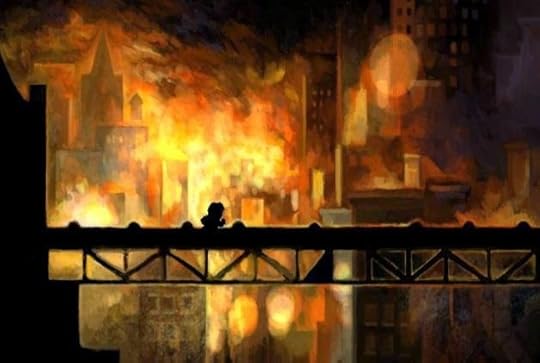 Tutto questo per quanto riguarda il gameplay in senso stretto. Ma c’è anche una storia dietro Braid, che si rivela meno banale di come può sembrare all’inizio. All’ingresso di ogni stanza, Tim passa infatti in una specie di “limbo” dove sono presenti le porte per accedere ai diversi livelli, e in cui alcuni libri illustrano la storia e il tema del mondo. Così inizia il mondo 2 (non è un errore: il primo è il numero 2): “Tim è alla ricerca della Principessa, rapita da un mostro orribile e malvagio. Questo è successo perché Tim ha commesso un errore.” Da qui deriva la tematica del rewind, che appunto consente di tornare indietro sui propri passi correggere gli errori. Dice ancora l’introduzione a questo mondo, intitolato Tempo e perdono: “Il nostro mondo, basato su rapporti di causa e d effetto, ci ha insegnato a essere avari di perdono, perché perdonare ci espone al rischio soffrire. Ma se abbiamo imparato dai nostri errori, se ci hanno fatti diventare migliori, non dovremmo essere premiati per questo, piuttosto che puniti?”. Nei mondi successivi, ulteriori brani concedono degli sprazzi del rapporto tra Tim e la sua Principessa, e lasciano intuire che le cose non siano lineari come appaiono in un primo tempo: probabilmente, il “mostro orribile” che ha rapito la Principessa è ben diverso dal Bowser che aveva rapito Peach. Il mondo 3 è Tempo e mistero, in cui compaiono i primi oggetti immuni al rewind operato da Tim; Tempo e spazio è un intero mondo che si muove di pari passo con Tim, scorrendo avanti nel tempo quando cammina verso destra, e tornando indietro quando lui fa lo stesso; in Tempo e decisione, Tim può proiettare un doppelganger che ripete le sue azioni, mentre lui si dedica ad altri compiti; nel mondo 6, Esitazione, Tim ha un anello che, quando viene posato a terra, proietta un’aura di rallentamento sempre più intenso man mano che ci si avvicina al nucleo. Alla fine di ogni mondo, Tim raggiunge un castello, e qui viene accolto da un simpatico dinosauro di pezza che gli annuncia, appunto, che la Principessa è in un altro castello, e il suo viaggio deve proseguire. Procedendo nel gioco, percorrendo mondi via via più tetri, i dinosauri sembrano sempre più confusi dalla presenza di Tim e dalla sua ricerca della Principessa. Solo una volta acquisiti tutti i pezzi dei cinque puzzle si potrà accedere infine al mondo 1 (che non ha nome), in cui il tempo scorre costantemente all’indietro, e qui raggiungere il livello finale del gioco, dove finalmente Tim troverà la Principessa e il mostro che l’ha rapita… ma la battaglia finale sarà tutt’altro che prevedibile. Una volta superato quest’ultimo ostacolo, si accede all’Epilogo, dove una serie di libri narrano la fine (ma lo è davvero?) della storia. Se già durante il viaggio dal mondo 2 al 6 le introduzioni avevano gettato alcuni dubbi sulla storia di Tim, dopo aver superato l’ultimo livello (che si intitola a sua volta Braid, ovvero “treccia”: la treccia della Principessa) e letto il lungo epilogo, si capisce che c’è qualcosa di più oscuro, e più profondo, nella ricerca della Principessa. Quella di Tim, si scopre, o almeno si arriva a sospettare, è una vera ossessione; la Principessa stessa forse non è una donna in carne e ossa, ma un simbolo, l’obiettivo finale a cui lui ha dedicato tutte le sue forze ma che continua a sfuggirgli. Alcune interpretazioni vedono in alcune citazioni inserite nell’epilogo dei riferimenti all’invenzione della bomba atomica, e la possibilità che Tim, coinvolto nella progettazione del supremo strumento di morte, stia cercando di tornare indietro per cancellare il suo senso di colpa. Non è facile trovare un significato univoco e coerente in ciò che accade in Braid, ma d’altra parte lo stesso autore afferma che tra le sue maggiori ispirazioni ci sono le opere di Calvino e Lynch: è chiaro quindi che esistono multipli livelli di lettura, sovrapposti e/o nidificati, e che lo stesso svolgimento del gioco sia a sua volta una metafora della ricerca di un obiettivo irraggiungibile, e che forse, anzi, non vuole essere raggiunto. Un’ulteriore conferma di questa interpretazione sono le stelle: nel gioco sono nascoste otto stelle, in posizioni estremamente difficili da raggiungere, che richiedono una manipolazione creativa delle regole del gioco e una grande abilità nei movimenti. Di queste stelle, una richiede un’attesa di oltre due ore per poter essere raggiunta, una può essere ottenuta solo prima di aver completato uno dei puzzle, l’ultima appare solo quando sono state prese le sette precedenti. Le stelle sono quindi obiettivi così remoti, così astrusi, che richiedono enormi sforzi di volontà e pazienza, e solo i giocatori più motivati (ossessionati?) riusciranno a trovarle tutte. Un'approfondita trattazione di come, secondo l'epilogo, deve essere interpretato Braid si può trovare qui, ma si sconsiglia assolutamente la lettura prima di aver finito il gioco (lo stesso vale per i video su youtube relativi all'ultimo livello: non guardateli!). Ma qualunque sia il significato che vorrete dare alla storia, vi accorgerete comunque di esserne stati toccati, e sarà difficile rimanere insensibili a quanto avete visto e appreso. Vi accorgerete che forse, alla fine, non è tanto l'obiettivo finale che ha importanza, quanto il percorso che vi ha condotti fin laggiù.