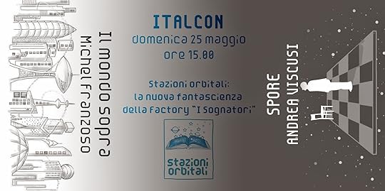 Sì perché c'è una ragione se saremo affiancati, ed è che la presentazione si svolgerà nell'ambito dell'Italcon, la convention annuale italiana di fantascienza, che quest'anno si terrà dal 22 al 25 maggio a Bellaria (provincia di Rimini). E quale occasione migliore di presentare in un colpo solo i due titoli della collana "Stazioni orbitali" dedicata alla fantascienza? Il titolo della presentazione prende proprio il nome da questa, ed ecco la locandina che abbiamo preparato per l'occasione.