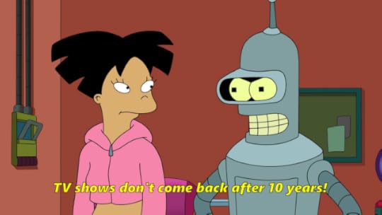Non l'avrei mai detto, l'ultima volta che ho fatto un post su Futurama (che era solo una celebrazioni dei fasti passati), che un giorno sarei tornato a scriverne perché ci sono nuovi episodi di cui parlare. Eppure eccoci qui, Futurama è stata vendicata e dopo dieci anni dall'ultima cancellazione è tornata su Hulu (da noi su Dinsey+). Per ora abbiamo venti episodi, dieci andranno in onda adesso e gli altri dieci, presumibilmente, il prossimo anno. E poi chissà.