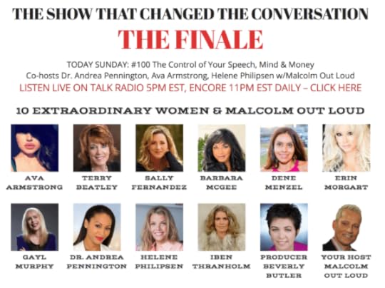 Yesterday was the finale of SEASON ONE of Life, Liberty & the Pursuit of Pleasure, airing its 100th show. This blockbuster talk-radio show on the America Out Loud platform was the inspiration of its fearless founder, Malcolm Out Loud. Earlier this year, Malcolm assembled ten extraordinary and accomplished women from around the globe to change the conversation. On April 8th, it began. As the tagline goes, “It’s a gender thing…or is it? World Peace, Religion, Sex, Money, Politics, Climate Change, Big Business, Big Ideas and Big Egos! Nothing is off limits.” As one of the co-hosts, I was honored to be part of this amazing journey.…And I can assure you nothing was off limits!