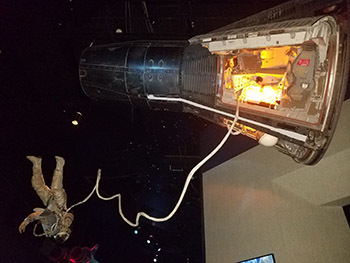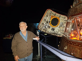 The Space Center is massive and we started in the International Space Center Museum, where we meandered around artifacts, space hardware and an orbiting laboratory. In the Starship Gallery, we saw the various capsules of Mercury, Gemini, and Apollo. While asking many questions, from the purpose of the massive number of gears in the capsule’s door to the intricacies of the landing gear, Jim Peacock would modestly reply, “I designed that.” It gave me chills to hear stories from Jim and Tom, two people who experienced firsthand, the activities of our manned-space program.