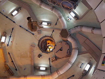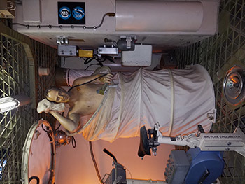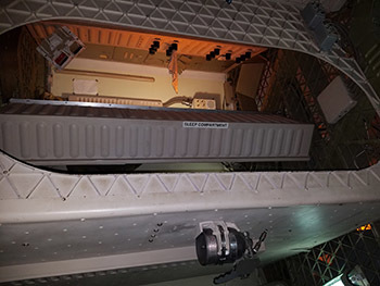 Later, we took the tram over to the original Mission Control Center, looked down at the enormous training center, and walked into the Shuttle Replica Independence, the one you’ll see in the photo strapped to a 747 airplane. Incredible as it is to imagine, this shuttle flew from the West Coast, having just returned from the real International Space Station, to the East Coast, attached to a 747. Joe and I had the incredible experience of seeing this spectacle in midair while we were living in San Francisco. We watched as it flew past the city and over the Golden Gate Bridge. Never could I have imagined that I would one day walk through the plane and see the shuttle from inside.