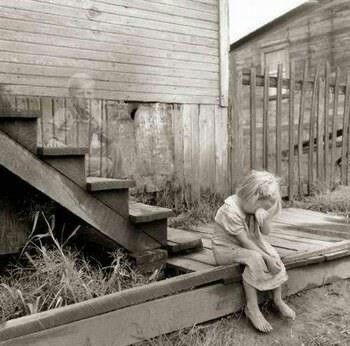 [Little girl being comforted by a friend/brother sitting on the stairs. Source: Wikipedia]I have no comment on this photo.