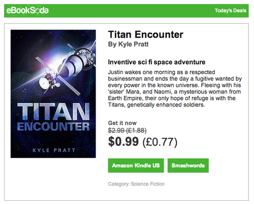 The ebook version of my debut science fiction novel, Titan Encounter, is on sale in Britain.