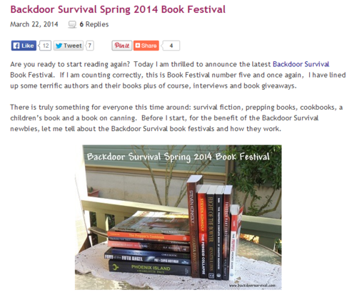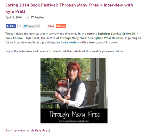 About two weeks ago the website Backdoor Survival, one of the top five survival and prepping websites, announced that Through Many Fires would was selected to be part of their Spring 2014 Book Festival. Today, as part of the ongoing event my novel was featured. The editor also interviewed me and asked about upcoming books.