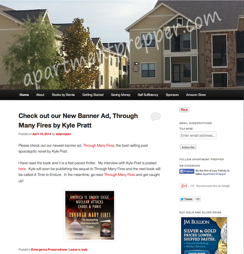 Through Many Fires was featured on ApartmentPrepper.com, one of the top survival and readiness websites.