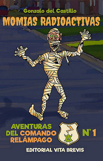 En fin, supongo que conviene explicar que Momias radioactivas es un libro, el primero de una nueva colección para niños en torno a los 8-13 años de edad que publica la editorial Vita Brevis. Se trata de la serie Comando Relámpago, sobre las aventuras de un grupo de cuatro niños que, aburridos al final de las vacaciones, deciden crear un club de cazadores de monstruos. Como era de preveer, en cuanto Leo, Toni, Cecilia y Superpepe fundan el club, la primera plaga monstruosa no se hace esperar: un ataque de momias radioactivas. El caos que se desencadena no por previsible es menos monumental.