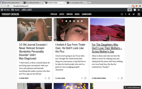 My article “For The Daughters Who Don’t Love Their Mothers – Screw Mother’s Day” is featured on the front-page of @thoughtcatalog today. Check it out!