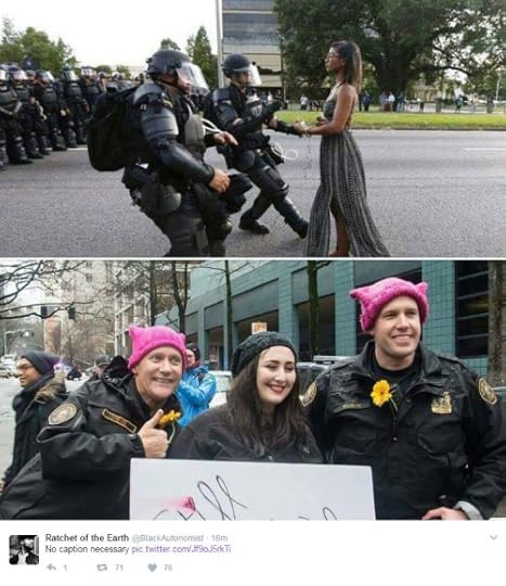 There’s a reason the Women’s March wasn’t considered a riot, and it has everything to do with white privilege and nothing to do with how “well behaved” we were. Police show up to peaceful BLM protests already in riot gear all the time.