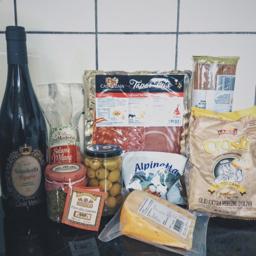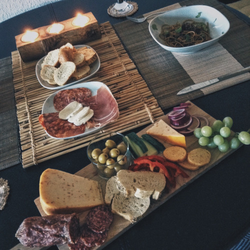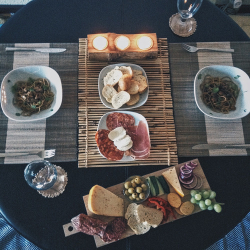Also our dining room is a magic carpet and tonight we flew back to Rome! Surprised the hubby with a romantic dinner because he aced all his exams and got hired at his dream company. On the menu: genovese pesto chicken garlic pasta, salami, olives, gouda cheese with chili, mozarella, rosemary bread, croutons, (to die for) ripasso red wine, and some spanish tapas. Yum, yum!