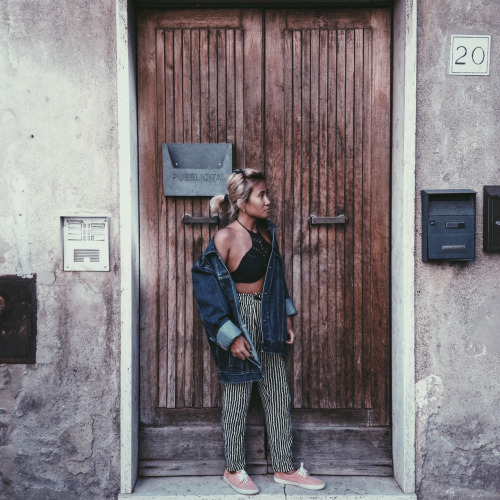 A bit of a 90′s look in Italy: Crochet halter top for my inner hoe and hubby’s denim jacket to cover-up for the Catholic cathedral tours.