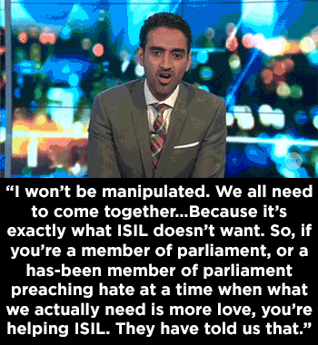 His name is Waleed Aly and he is an academic and lawyer. His area of research is global terrorism. He and his wife are both activists for the Australian Muslim community. He is not just ‘a Muslim TV host’.