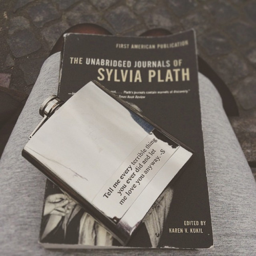 Spent the afternoon by stealing the boyfriend’s flask with my poem engraved on it (and red wine inside) + words to live by by good ‘ol Sylvia.