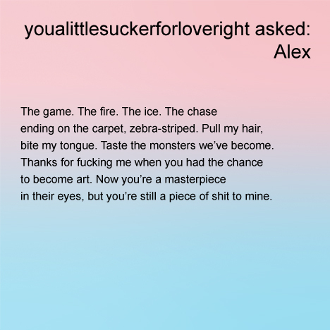 “It is hard to forget you in the morning. When they leave and I am naked, without a blanket to...