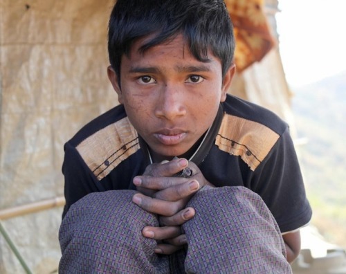 “My parents fled Myanmar twenty-five years ago, so I was born in these camps. I feel like a prisoner here. I don’t have any rights. The only thing that refugees are allowed to do is exist. It’s not legal for us to study. It’s not legal for us to work. Even if I earned a PhD, I wouldn’t be able to get a job in Bangladesh. But we can’t go home. The only thing worse than being here is going back to Myanmar. Some of my family decided to stay in Myanmar. A few months ago I got a call from my cousin in the middle of the night. He told me: ‘Pray for us. We are going to die. I am watching everyone die and there’s nothing I can do.’ I told him that we’d pray for him. I could hear gunshots in the background. And then he hung up. A few weeks later he arrived alone in the camp. He told us that fifty of our relatives were killed that night. He was the only one who escaped.”