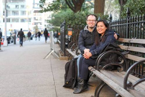 “We met five years ago in the comment section of our Wordpress blogs. I was living in the Philippines. I randomly discovered his blog and commented on a post about how much he can eat in one sitting. Then it became one ongoing conversation for three years. We began our relationship on August 24th 2013– when I wrote ‘I love you’ in an email. We talked every day, but we didn’t even meet in person until two years later when he came to visit me in the Philippines. He proposed the very first day. We stopped working on our old blogs and created one together called Two Bees In A Blog.“