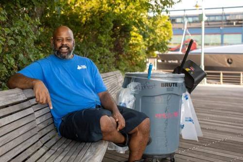 “One of my first days in New York, I went running with a friend in Central Park. I pointed at one of those big apartment buildings on 72nd Street, and said: ‘God, I’d give anything to live there.’ But the devil hears your prayers too. Ten years later I was jogging home to that very same building. I could see the light on in our apartment, and I didn’t want to go inside. I was in a marriage that I didn’t want to be in. A job I didn’t want to be in. I was drinking daily, way too much. I said: ‘God, I’d give up everything if I could just start over and be happy.’ That very night I got in an argument with my husband; and that was the end. When I first applied for this job, I felt like it was beneath me. I was angry at my situation. That first day they tried to send me to pick up trash along the Hudson. I said: ‘No, no, no. Anywhere but there.’ I used to jog along the Hudson; I was afraid some of my old friends would see me. So they sent me to Times Square instead. I worked there for awhile, but one day I got in trouble. And the boss said: ‘It’s the Hudson or nowhere.’ My phone bill was due. I didn’t have a choice. I’ve been here for a couple months now, and I can’t believe how long I was avoiding it. I love the sun. I love plants, I love water. The funny thing is, no matter how many times I used to jog down here, I never really saw it. I’d be so focused on me, or what I was trying to achieve, or the person who was in my path. Now I see the greens and the blues and the yellows. The view is just different when you’re picking up trash.”