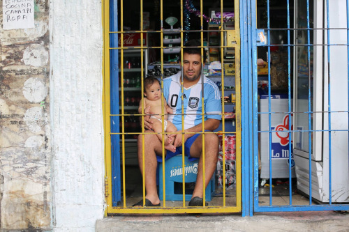“There weren’t many opportunities to work in Paraguay. I was selling tools on the street. There was no money. There was nothing. I came to Argentina when I was nineteen and life has been so much better. I work every day. I’m close to opening another shop just like this. I do get called a lot of names like ‘Shitty Paraguayan.’ But I’m used to it now. In the beginning I would try to fight back, but not anymore. When I first arrived, I fought a man who tried to stab me through the cage. But he came back with twenty people and destroyed my store. So I don’t fight back anymore. Everyone in the neighborhood knows me now, so I’m treated with more respect. And my son was born in this country. So this one is an Argentinian. He’s going to study.”