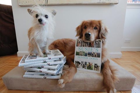 Today marks a major milestone in the history of geriatric canine literature! The Susie’s Senior Dogs book was released today. After months of breathless anticipation, scholars and critics agree: ‘Susie’s Senior Dogs has set a new high-water mark among books that have nice pictures and sweet stories about old dogs who find new homes.’ The author, coincidentally, is my wife. She worked so hard to make this book perfect and it came out wonderfully. The book will warm the heart of every dog lover. Moby, Simon, and I are very proud of her. And Erin is using every penny that she makes to pay for the medical bills of old foster dogs– so that they’re healthy and happy when they arrive at their new homes. The book only costs $15 human dollars. So please consider getting Susie’s Senior Dogs for yourself or the dog lover in your life!