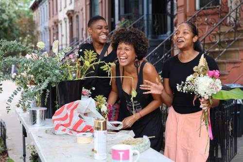 “We’ve got to get Jessica’s flowers ready. She just started her company Golden Sol Florista. Today is her first event, and she’s freaking out that we’re going to be late. I’m telling her, Jessica. Relax. I’m a phenomenal driver. Me and Jessica have the same birthday: March 2nd. I’ve got a birthday card from her on my bed stand saying: ‘You’re a beautiful person, put you first.’ She’s always dropping gems like that: ‘Don’t weigh too heavily on things. Nothing is permanent. You’re always exactly where you’re supposed to be.’ She is a visionary. A pourer of love. A light. She is the definition of Golden Sol. But punctuality is not her strong suit. I got here at 8:30 AM. My job was to drive, but nothing was ready. So I’m like: ‘At least give me an apron.’ We’ve been out here making flowers all morning. The block is lit. Somebody brought us Mimosas which is maybe why I’m like ‘woo’ right now.’ Two little girls came by and we gave them custom bouquets. It’s crunch time and Jessica is starting to do the bumble bee, buzzing all over the place. I’m telling her: ‘Jessica, relax. You’re right on time. And exactly where you’re supposed to be.’”