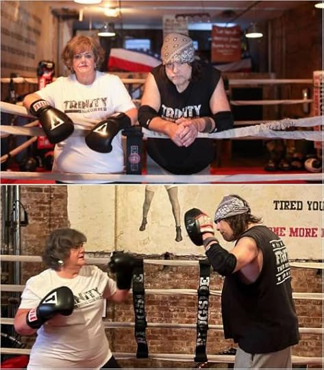 (11/15) “I’d always head straight to the gym after my shift at Starbucks. Martin trained me for free the entire time I was in the shelter. He told me that he was going to turn me into a fighter. He was hard on me. He said I had more problems than a math book. And if I ever complained, he’d call me a drama queen. One afternoon I came in upset, because I’d just gotten an email from my husband, saying I was outside the will of God. It had really shaken me. But when I told Martin what happened, all he said was: ‘Fuck that shit.’ He told me to get in the ring. And as he wrapped my hands, he said: ‘We’re going to do things a little different today. Every time you throw a cross, you’re going to say: ‘Fuck that shit.’ I laughed. I said: ‘Oh, no. I don’t talk like that.’ But Martin wasn’t laughing. He said: ‘You’ll talk like that today.’ I looked around the gym, and it was just me and him. So I gave it a try. Jab with the left. Jab with the left. Cross with the right, and: ‘Fuck that shit.’ Martin was wearing the pads on his hands; and he’s saying: ‘Louder. kid. Louder.’ He said: ‘Nobody fucks with you, nobody.’ Which wasn’t true of course, because I’d been fucked with my entire life. But I tried it again, this time even louder: ‘Fuck that shit.’ Louder. ‘Fuck! That! Shit!’ We did it for thirty minutes. With each punch, I got louder and louder until I was screaming. At first those words were just about my husband, and the email he had sent. But as I kept hitting the pads, those words became something else. It became my way of giving voice to everything that was done to me in the name of God. The psychological abuse in the marriage. The sexual abuse as a child. All the guilt I’d been made to feel, all the shame. Fuck. That. Shit. It was wrong. I’ve known it was wrong my whole life. But I never defended myself. Or if I tried, it was: ‘Get back in your place.’ But now I was doing something. I was fighting back. At the end of the day when I walked out the door, I felt relieved of so much pain. Martin called me over to the desk. He said: ‘Listen, kid. From now on, every time someone tries to mess with you, or makes you feel less than, you gotta say it: ‘Fuck that shit.’”