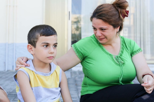 “They fired rockets from a mountain near our house. They were very loud, and every time he heard them, he’d run into his room and close the door. We’d tell him fake stories. We’d tell him that there was nothing to worry about, and that the rockets were far away and they would never reach us. Then one day after school he was waiting in a line of school buses. And a rocket hit the bus in front of him. Four of his friends were killed.” (Kos, Greece)