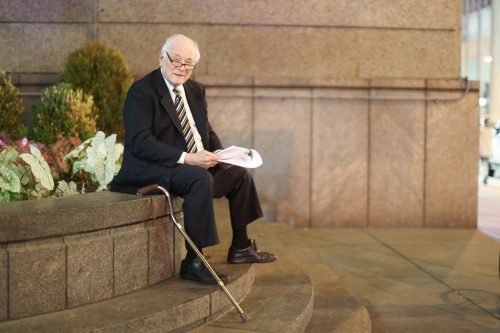“I’m practicing my lines. I just got off work and I’ve got an all night shoot tonight. I’m playing a goofy senator in a small independent film. I’m 81 now, and I didn’t even begin acting until I was 76. I always wanted to do it since I was a kid, so I thought it was now or never. I’d love to get just one meaty part in a movie.”