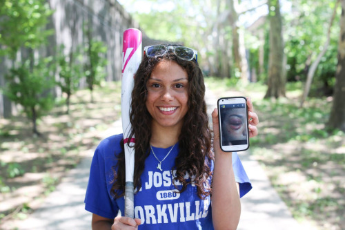 “I’ve only been playing for three weeks. I had to miss a couple practices already because I tried to catch the ball and it hit me in the face.”