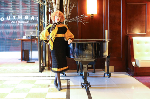"I only wear my own dresses. Whenever I sit, I knit."
