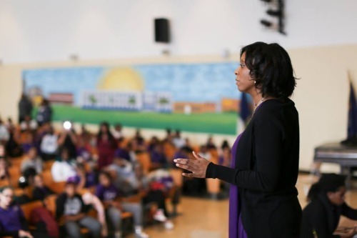 “Before all of this happened for our school, I felt broken. And I think the world felt a little broken too, because a lot of bad things have been happening lately, especially between black people and white people. But all of you gave people a reason to feel a little less broken. And the craziest thing about all of this is that it’s happening in Brownsville. Before this, people watched the news and read the newspapers, and some people even thought that all we do here is fight and act crazy. But now there are so many people out there that care about you and want to know more about you. People are even emailing me and asking if they can meet you and mentor you. Not just people from Brownsville, not just people from Brooklyn, not just people in New York, but people all over the world. So I need all of you to work a little harder. Whenever you don’t feel like doing your homework, I need you to remember that you’re helping tell the story of Brownsville to people all over the world.”