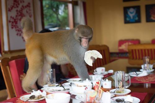 We were eating lunch with the door open, and a monkey started to peek through the door.’Isn’t that cute?’ we thought.
