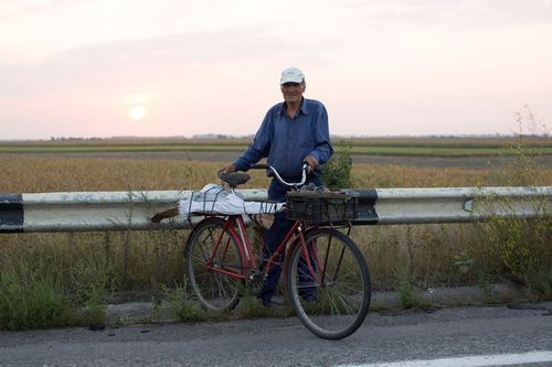 "I’m 66, but I bike 55 kilometers every day. I don’t get much from my pension, so I ride along this road and pick up metal scraps to bring to the collection center. I ride my bike everywhere. A few months ago, I rode 170 kilometers to visit my daughter. I left at noon and got there before dark. I wasn’t even rushing!"