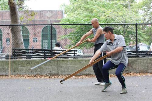 "That’s the Grandmaster in the back. He doesn’t speak much English. He was number one in China back in 1980, so I knew of his name long before I met him. He’s very humble. A true gentleman fighter. He’s 68, but I’ve seen him put a spear against his neck, and use it to push a car."