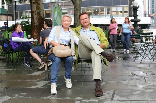 He made a slightly puzzled expression, then turned to his wife and started speaking in German. She looked up at the sky for a second, then said: “He is island in my life.”