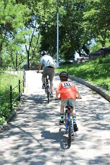 These two came flying by me in Marcus Garvey Park, and the father was narrating the bike ride as if it was the final leg of the Tour De France: “They’re coming around the corner!” he screamed. “The final hill is approaching! The champ is maintaining his lead! The contender seems tired! He’s got the champ his sights but he may have to settle for second place!”