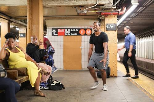 "I’m at a point now where I’m trying to figure out if acting will be feasible as a way of life. I’m actually working right now. Every 1.5 hours, a theatrical tour bus drives by this spot, and I stand up and sing a song called ‘How Do I Get To Broadway.’"