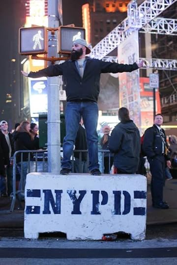 Times Square is always quite the spectacle, but Saturday night the effect was the doubled with all the Super Bowl installations. This man got a little carried away with inspiration, jumped up on a police barricade, and screamed at the top of his lungs: “ANYTHING IS POSSIBLE!”