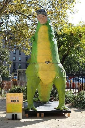 Due to some pesky laws and permit requirements, the 15 foot tall Christopher Walken HONYsaurus Rex was unable to be unveiled at the book signing. However, it currently stands in all it’s glory on the corner of 2nd Ave and Houston. It will be viewable for the rest of today, and all day tomorrow. Eat your heart out, Banksy.