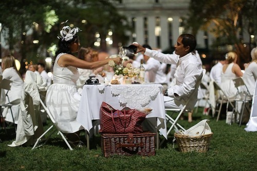"He’s not as adventurous as I am. He really enjoys his routine. But if I ever want to try something new, like this, he’ll dress up and carry the picnic basket. "