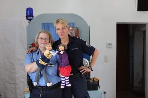 “We found this old box while cleaning the police station a few years ago, and we were about to break it down and destroy it. But I said to Elba: ‘If we could somehow fit inside there, we could start a puppet show.’ So that was the beginning of Lilly and Mo. We did everything ourselves. We made the puppets. We painted the stage. We gave some cake and coffee to the boys in the radio room, and they gave us a transformer. We held our first show for the kids and grandchildren of our colleagues. Our boss let us use his office. We powered everything with an old car battery. One of the puppet’s heads fell off, and the box broke so we fell through the wall, but we eventually figured it out. We’ve done about 200 shows over the last few years. Every week a kindergarten class comes to the station. And on weekends we travel to parks and squares. We’re just trying to teach basic crime prevention. Maybe Lilly will see a fire and call for help. Or a stranger will offer her a ride, and we’ll ask the kids what she should say. A lot of times we forget our lines. But the kids don’t know the story, so they never seem to notice.”