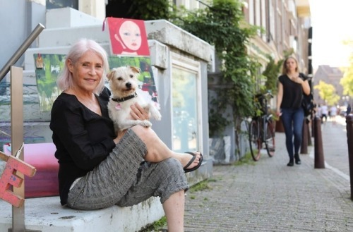 “My husband got involved with a younger woman at work. I was relaxed about it at first. He’s thirteen years younger than me, so I thought: ‘Shit happens.’ But then she got pregnant. Luckily through the divorce process I had the opportunity to take over this shithole place with no heating, which I’ve turned into an art studio. And now I’m living my best life. Everything is for sale except the pink chandelier and the dog. Anyone is free to stop by at anytime. You can eat or drink whatever you want. All the young people in the neighborhood love me. I’m the oldest person in our friend group. Everyone else is in their twenties or thirties. They call me Queen Mama. I call them my adopted kids. I always help them with their school projects and resumes and interviews. I only ask one thing in return. Each of them has to teach me one new thing every week: a piece of music, a trend, an idea. Just so I can stay up to date. Before you take the photograph, let me go inside and put on some make-up. We were out until 2 AM last night.”