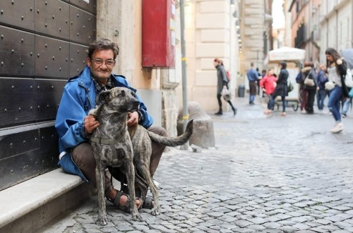 “I used heroin for ten years. It wasn’t a very good life, as you’d expect. I had my son taken from me. I lost my job at the Fiat factory. I spent all my time trying to find money, find dealers, and stay away from police. I hated myself. I couldn’t face anyone. Then one day my friend’s dog had puppies. I’d never had a dog before, but I always liked animals, so I told him to give me the smallest and ugliest one he had. The one nobody else wanted. And that’s how I got Joe. Joe was the angel of my life. We understood each other. There was no need for words. He followed me around all the time. He slept next to me on the street. The moment I opened my eyes in the morning he would lick my face. He gave me self-esteem. I was a complete loser but at least I could take care of Joe. I could bring him to the park. I could bring him to the vet. I could raise enough money to get his medication. He’s the reason I was finally able to quit heroin. Because if something happened to me, what would happen to him? So I got clean. It was hard but I got clean. Joe lived for another thirteen years. He got a tumor in 2012 and held on a few more months. I barely survived it. I was able to stay off drugs, but I promised myself that I’d never get another dog. It’s just too painful. But two years ago I found Leica beneath a mobile home. She was all skin and bones. She’d been abandoned. I didn’t have a choice. For the first few months I called her Joe. But I had to stop. Because Joe’s gone. And the name doesn’t really matter, anyway. It just matters that I love her.”