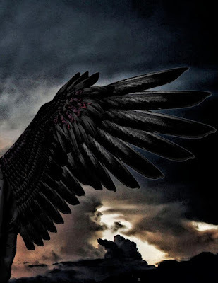 When he landed, he first let go of Aaron. He put both arms around me. Then he softly began to lower me. I felt the gentleness of his manicaed arms. I felt there warmth against me. I did not want to let him go. Then in a moment I saw his wings. They were an immense black tempest. There was in the tempest an immensity which I was not a part of. There was him and the black tempest, and they were all the same. He closed his wings ever so slowly. He looked at me with his golden eyes and I saw me in them. Then he unwrapped his wings, stepped back and vanished.