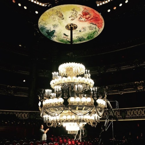 A glimpse of how the sausage gets made at the opera house in Paris: annual bulb cleaning and replacement of the chandelier. (at Palais Garnier)