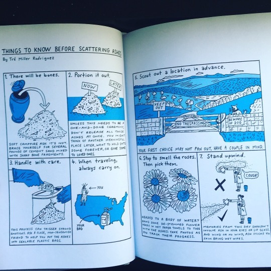 Despite catching my third chest cold in as many months, I haz the happy feelings today. It’s not just the DayQuil—it’s the words and imagery in a book from my Modern Loss editors Rebecca Soffer and Gabi Birkner. Their realtalk essays about grief—both were orphaned in their 20′s—paired with wry illustrations from Peter Arkle just hit the reset button on bereavement books. Even my most-shared Modern Loss essay on how to scatter ashes has been reimagined as, yes, a comic strip.
